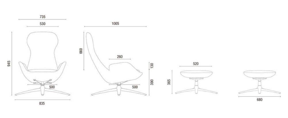 Disponible en versión giratoria con base en aluminio pulido, ofrece 7 tipos de revestimientos con más de 80 tonalidades para personalizar cada detalle.